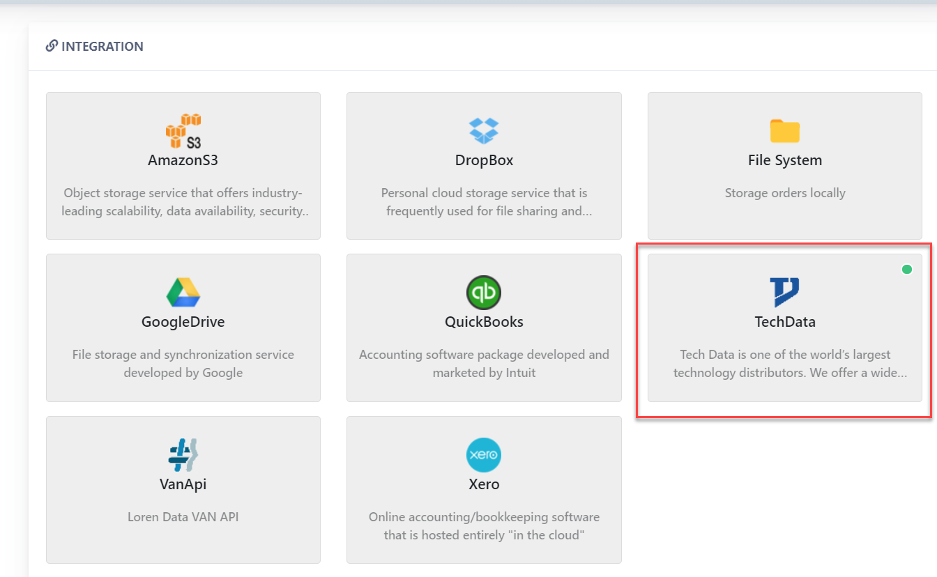Once that account is setup with TechData, then in our application, you will use that user name and password to setup the integration.